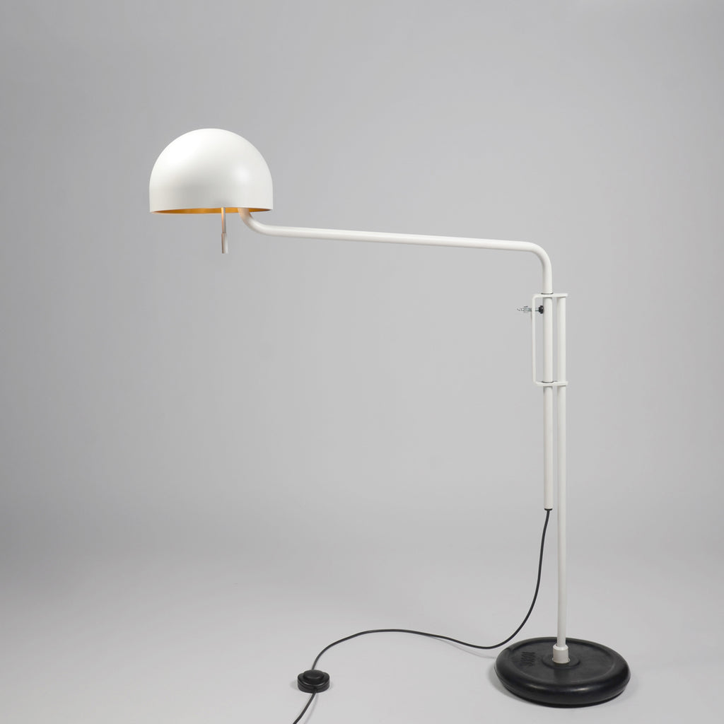 The Officer Tolstoy lighting in white ( RAL 9010 ) with inner shade in gold.